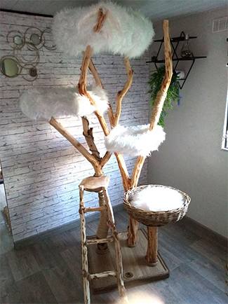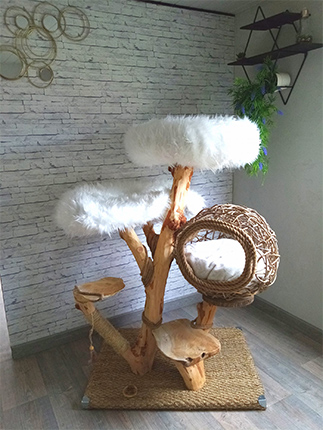 C' est pour cela que que je fais des creations spontanées qui laissent libre cours à mon imagination selon les branches que la nature m’offre,ainsi que des créations sur mesure qui vont vous permettre de créer l'arbre de rève pour votre chat