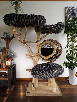 j'ai également developpé une gamme d’arbre à chat que je peux reproduire presque à l’identique (selon le bois) si un modèle vous fait craquer
